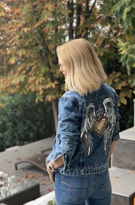 Dos corazones fueron los diseños que plasmó Cecilia Bolocco en las chaquetas de jeans de su exclusiva línea para Apology de Falabella, los cuales fueron bordados por madres que viven la difícil experiencia de tener un hijo con cáncer.