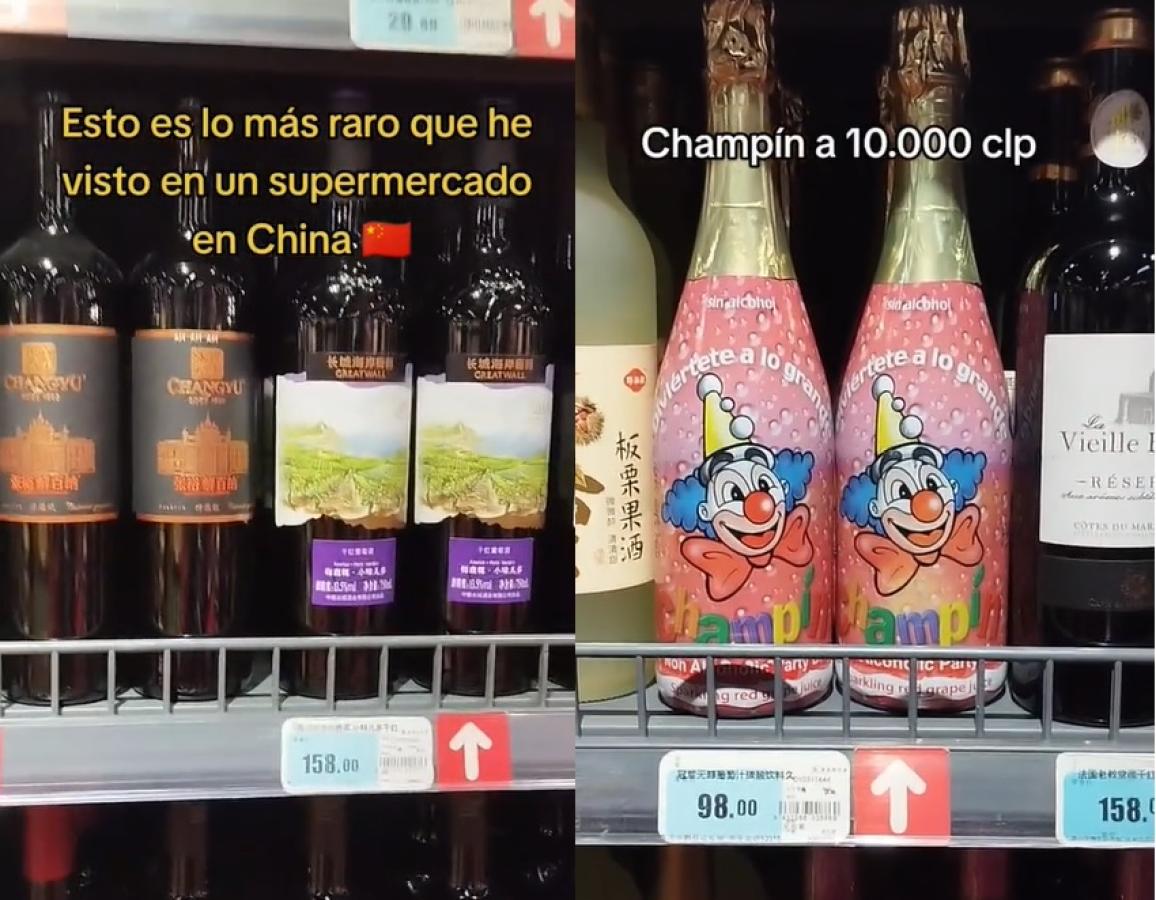 El "champín" es una bebida tradicional que se ocupa en los cumpleaños infantiles, ya que no tiene alcohol y cuesta entre unos 3 mil a 7 mil pesos. Sin embargo, lo que llamó la atención es que estaba en la zona de "vinos exclusivos".