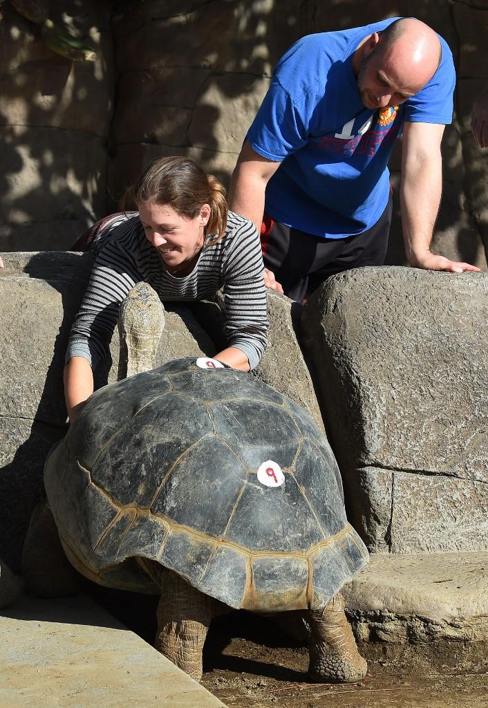 "Su isla las recibe con los brazos abiertos", agregó. Con un caparazón en forma de montura, unos 80 kg, 1,5 metros (en su máximo estiramiento) y una edad estimada de más de 100 años, Diego es padre de al menos un 40% de las 1.800 crías llevadas a Española.