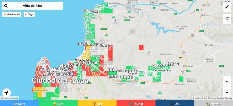 Pero en el sitio también es posible ver otras regiones. Por ejemplo, en la Región de Valparaíso se describe a Valparaíso como “Ciudad del me…”, o a el sector donde está la Universidad Santa María como “Hogwarts”.