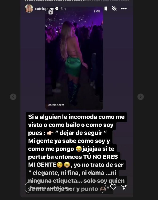Al parecer, la modelo recibió algunas críticas de usuarios, ya que en sus historias realizó un descargo hacia ellos: