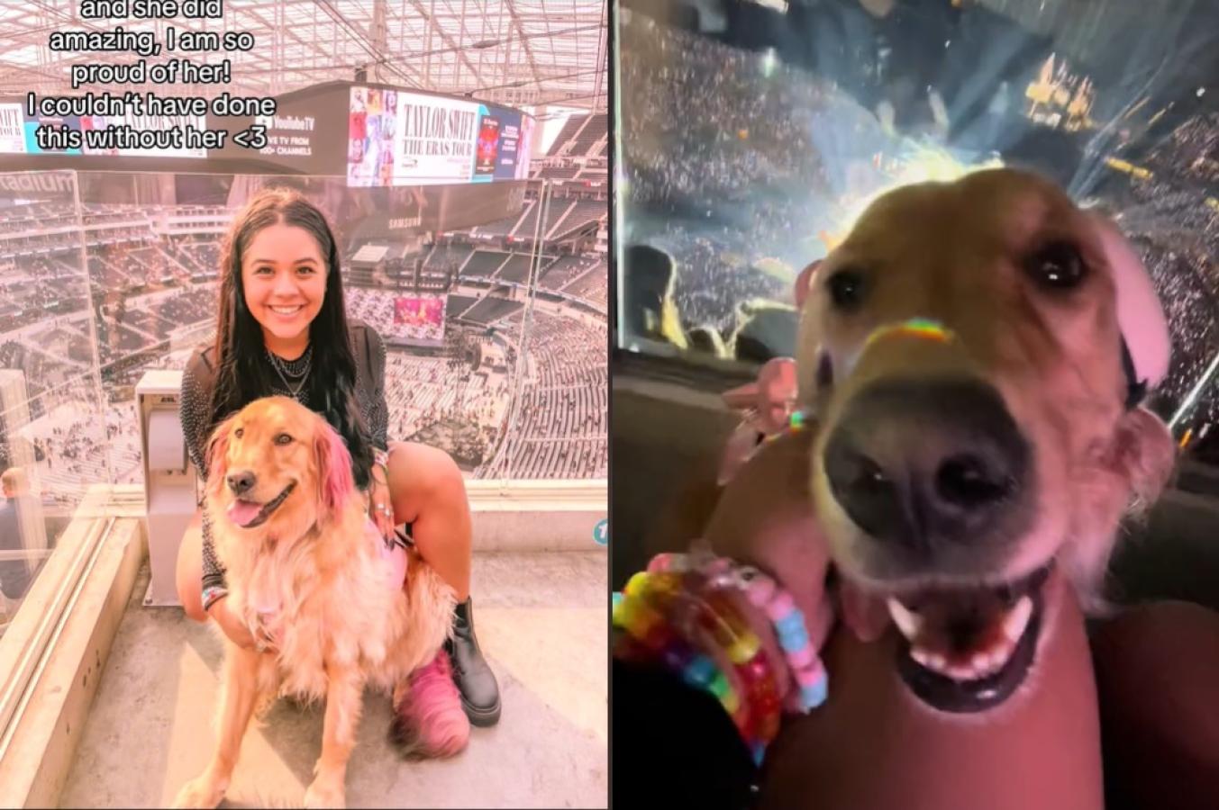 Los conciertos de la cantante estadounidense Taylor Swift son todo un acontecimiento, tanto así que un perrito de compañía también disfrutó el espectáculo.