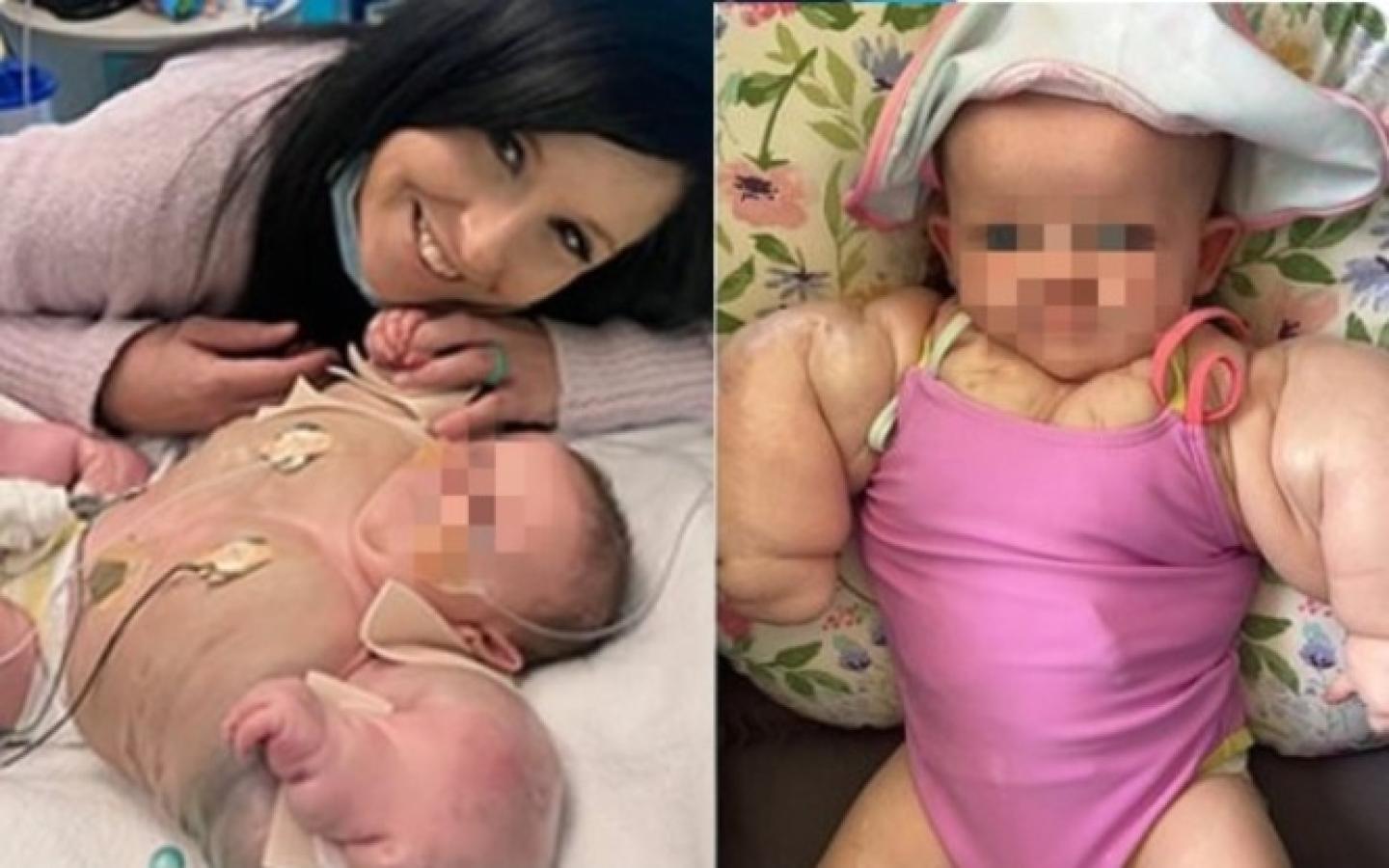 Una bebé está siendo apodada como "Baby Hulk" tras nacer con una rara enfermedad que la hace tener los brazos y pecho hinchados.