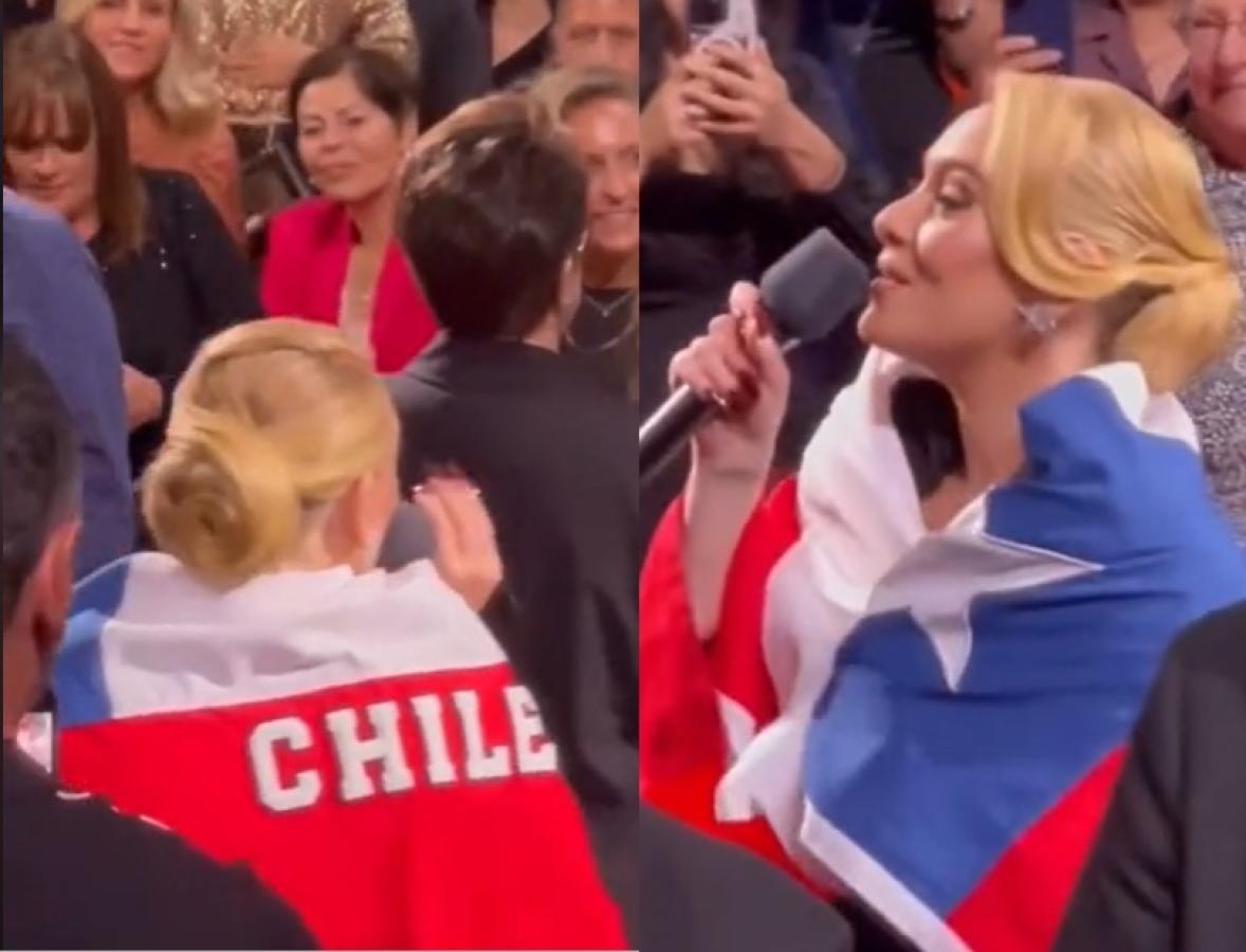 La cantante británica, Adele, sorprendió a todos sus seguidores chilenos al vestir una bandera chilena durante su presentación en el Coliseo del Caesars Palace, en Las Vegas, Estados Unidos.