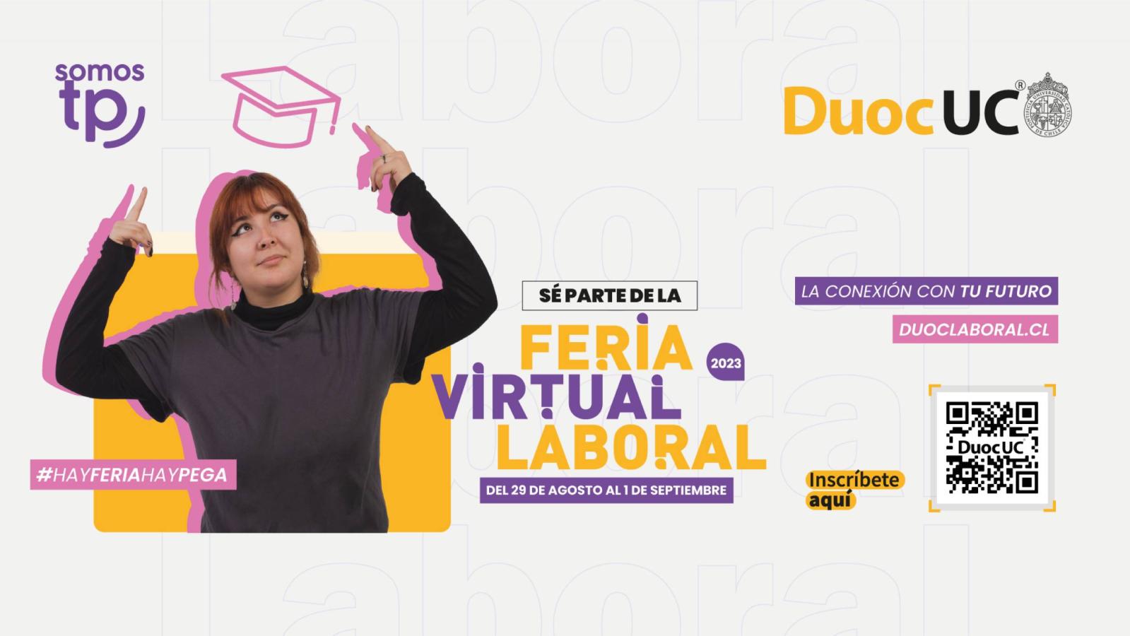 Como parte del proceso de formación, cada año Duoc UC realiza la Feria Virtual Laboral, con el objetivo de reforzar el vínculo con el mundo del trabajo. En esta instancia, las empresas pueden ofertar una variedad de vacantes, ya sea de trabajo o práctica, a través de un portal exclusivo para estudiantes y titulados de Duoc UC quienes podrán postular según su área de interés. Además, las empresas que así lo deseen pueden realizar una charla o taller sobre alguna temática relacionada a su rubro o de impacto social.