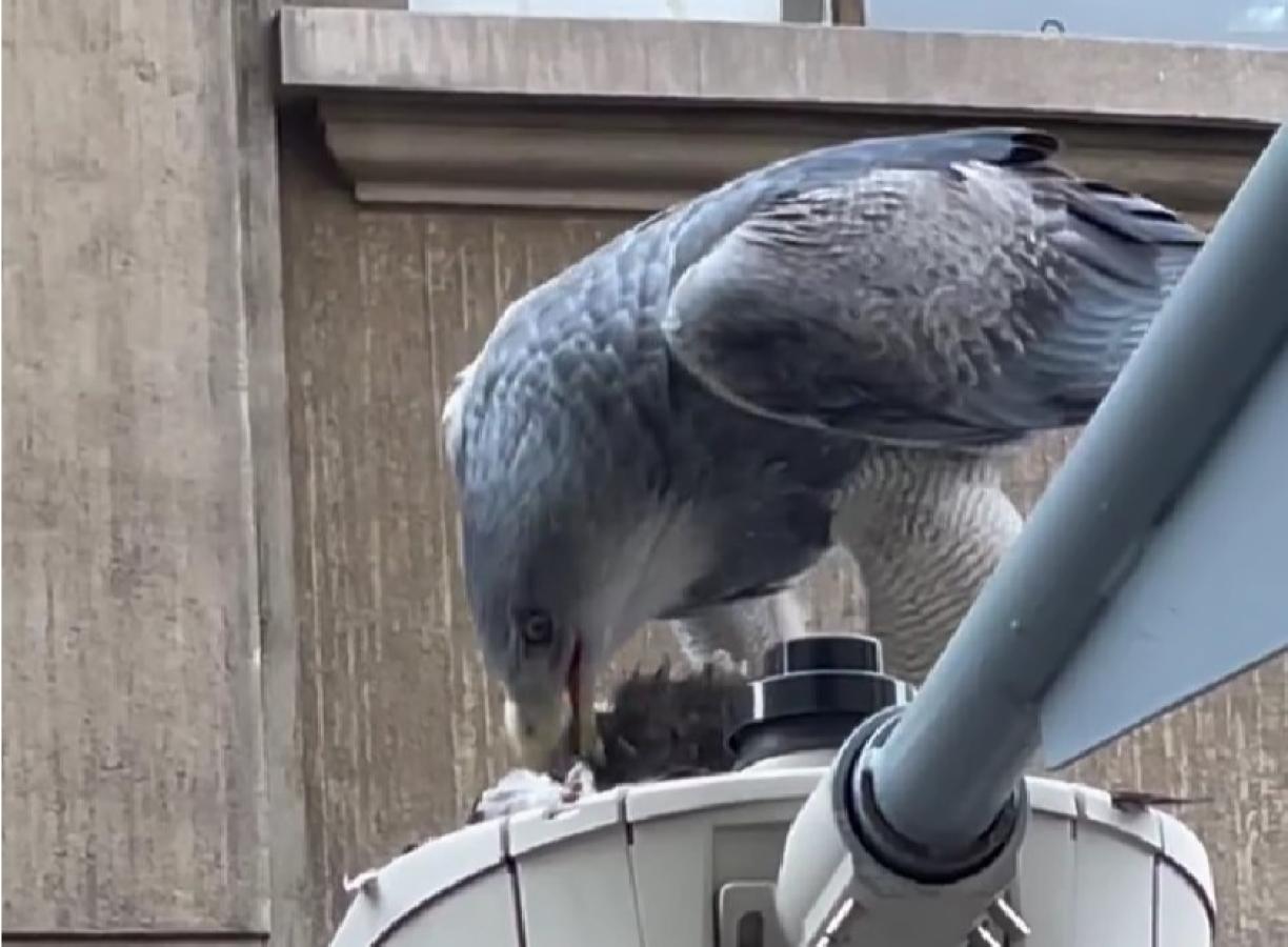 Graban a un águila comiéndose a una paloma en pleno centro de Santiago