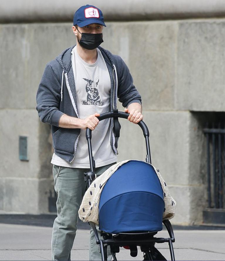 El actor fue captado paseando a su bebé en un coche por las calles de Nueva York este lunes, mientras su pareja caminaba detrás de él, indica Daily Mail.