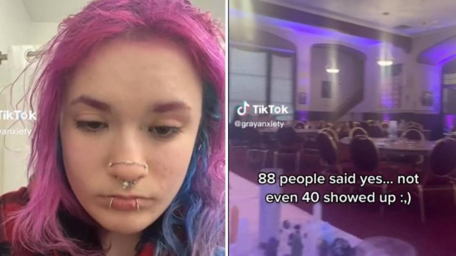 En el registro se puede ver un salón y mesas decoradas, pero casi todos los asientos vacíos: "88 personas dijeron que sí asistirían... Ni siquiera 40 se presentaron", escribió.