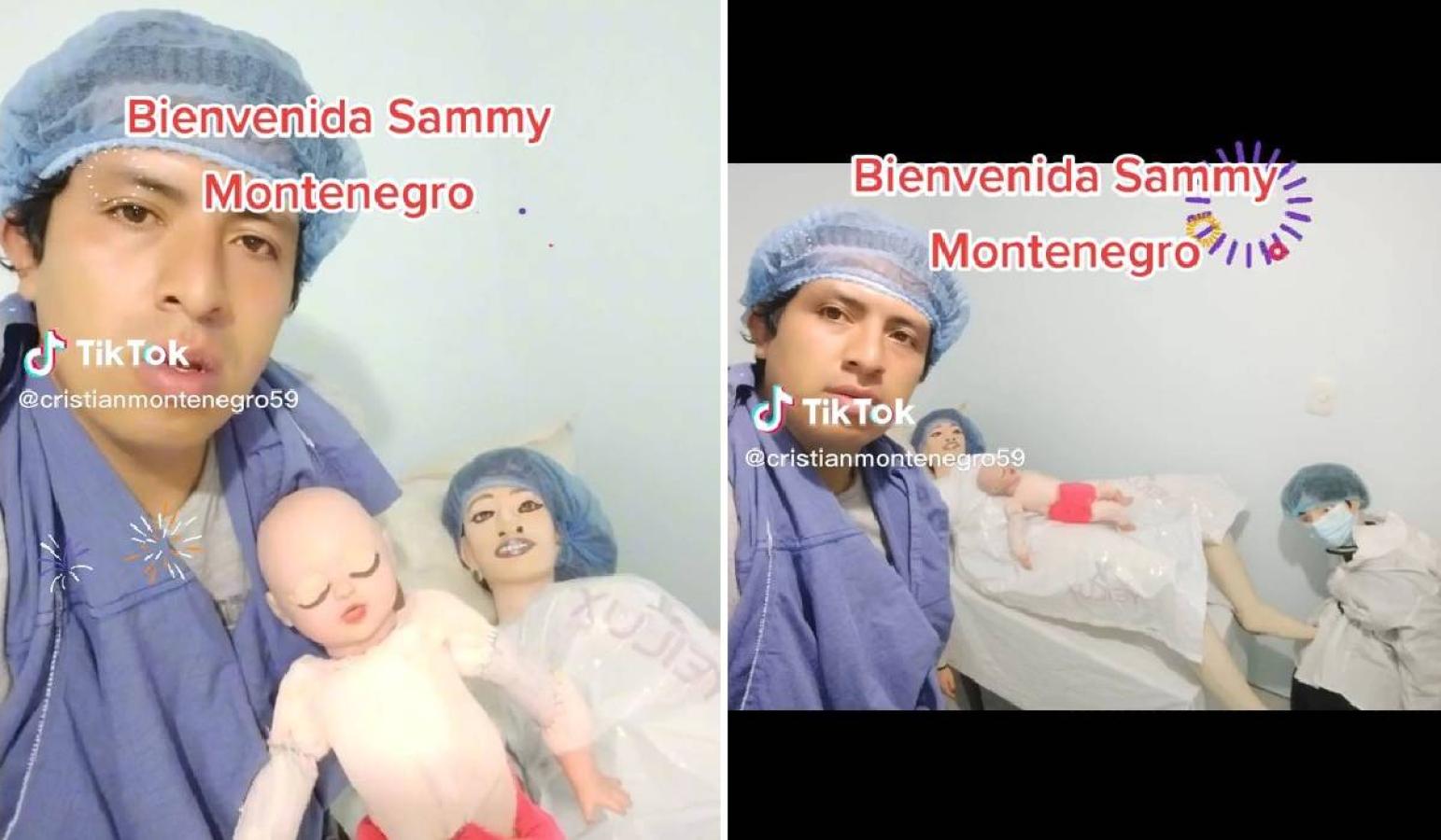 A través de su cuenta de TikTok @montbk5959, Cristian había mostrado varias imágenes de su esposa Natalia "embarazada", para luego compartir un video con el texto "My árbol genealógico".