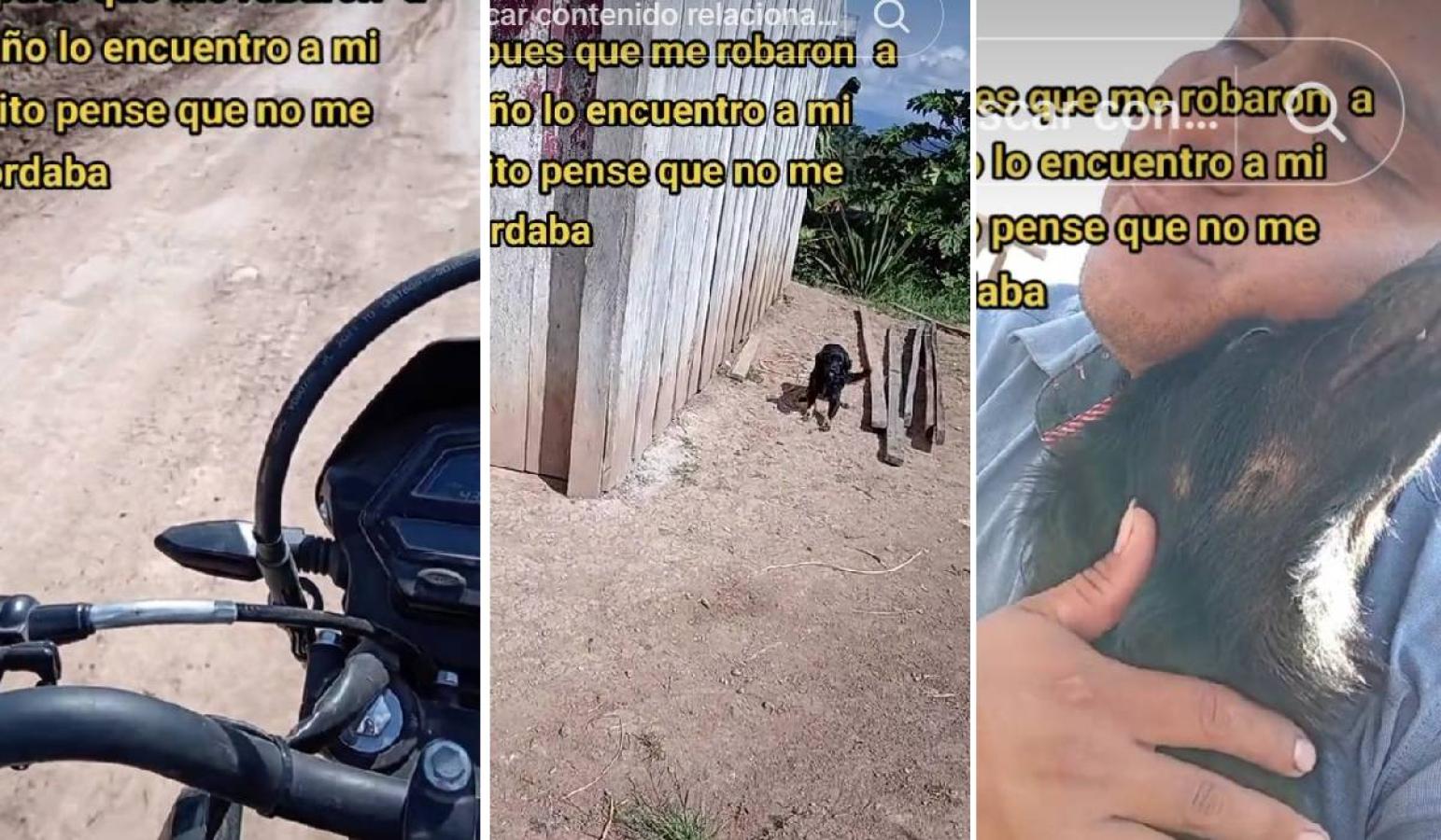 "Después de que me lo robaron, a un año encuentro a mi perrito, pensé que no me recordaba", se lee sobre las imágenes.