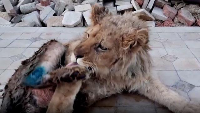 Simba, como fue rebautizado por los rescatistas, apenas podía moverse y se lamía las heridas con mucho dolor. Asimismo tenía heridas graves en la columna vertebral.