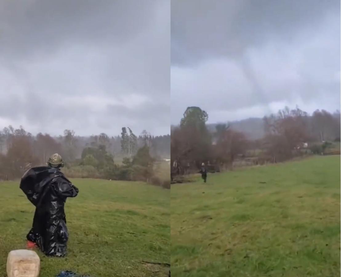 Un inesperado torbellino sorprendió a los habitantes de la comuna de Futrono, región de Los Ríos, lo que causó caída de árboles en el camino a Locopán.
