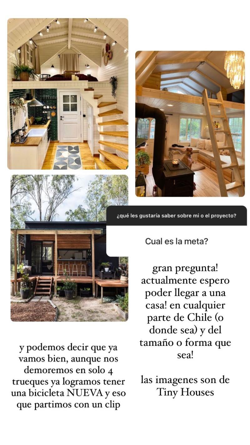 Vicente Rojas señaló que no tiene un plazo determinado de tiempo para obtener la casa, pero quiere saber hasta dónde puede llegar. Incluso en una historia de Instagram mostró una casa prefabricada de Tiny House.
