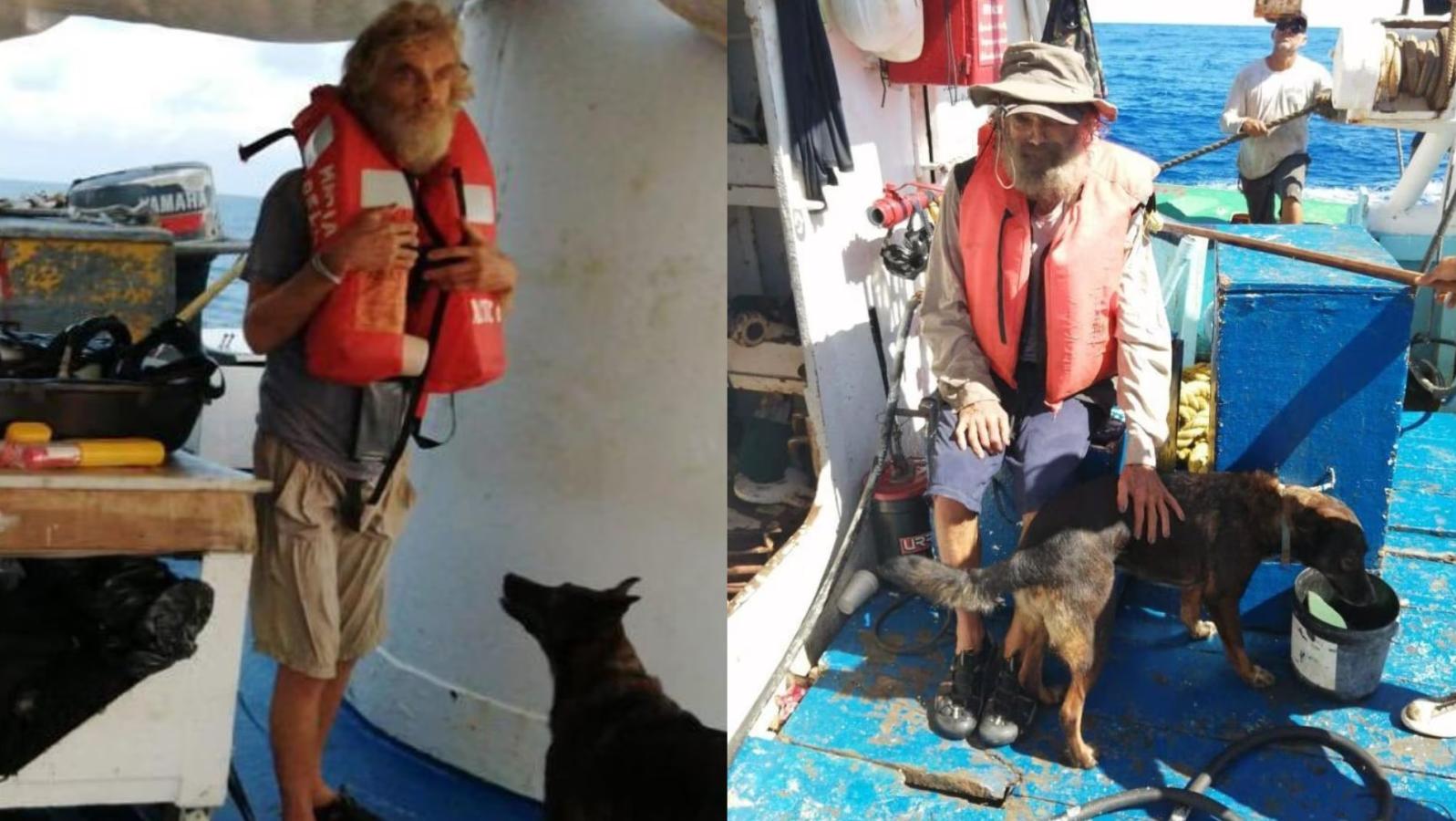 El hombre, identificado como Tim Shaddock de 51 años, fue localizado la semana pasada en una embarcación averiada, en compañía de su perra Bella, luego de que un barco atunero los avistara.