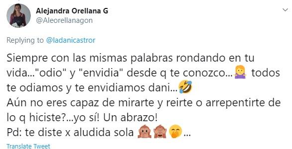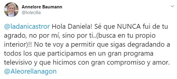 Hay que recordar que otros ex integrantes de “MasterChef Chile” también criticaron a Daniela por sus polémicos dichos. Tal fue el caso de Alejandra Orellana y Annelore Baumann, quienes usaron Twitter para manifestar su postura.