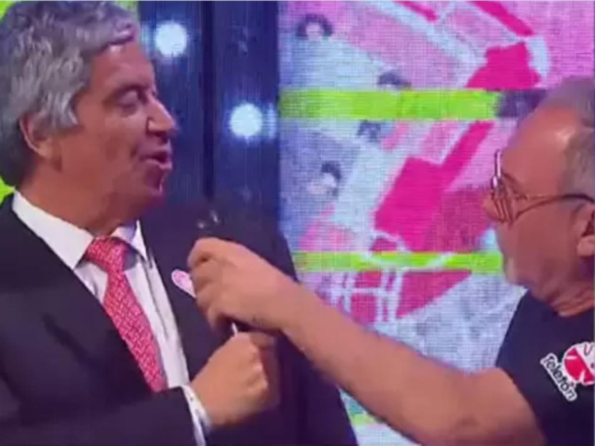 Un tenso y a la vez divertido momento se pudo observar en la madrugada del sábado, cuando representantes de la cooperativa Coopeuch entregaban su donación a la Teletón.