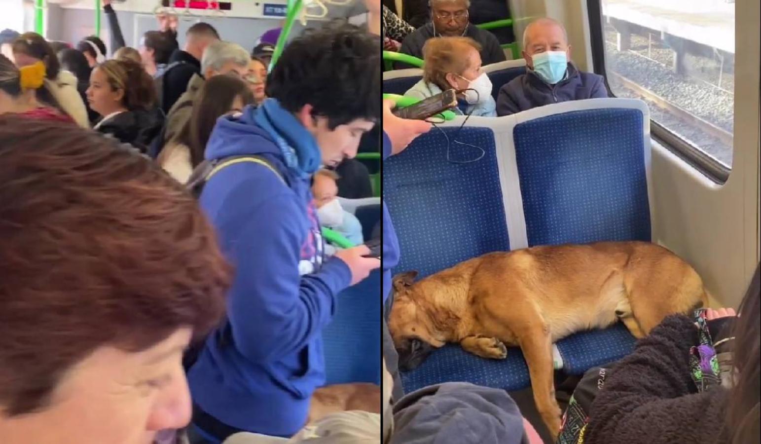 La usuaria grabó a un perro que iba durmiendo plácidamente sobre dos asientos del metro, mientras este estaba repleto de gente. Incluso muchos iban parados.