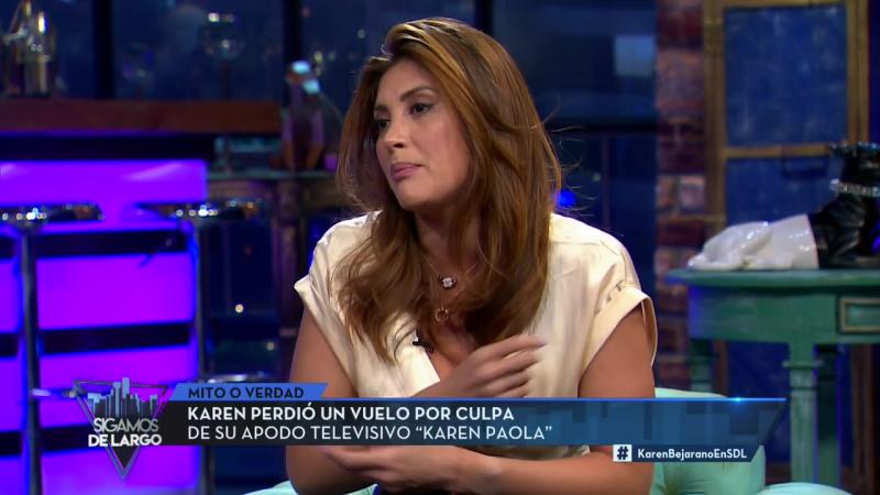 En “Sigamos de Largo”, la animadora de televisión contó que perdió un vuelo por culpa del apodo televisivo que tenía, ya que el productor de un evento para el que fue contratada compró el boleto a nombre de Karen Paola y no Karen Bejarano, como realmente se llama la ex figura de espacios juveniles.