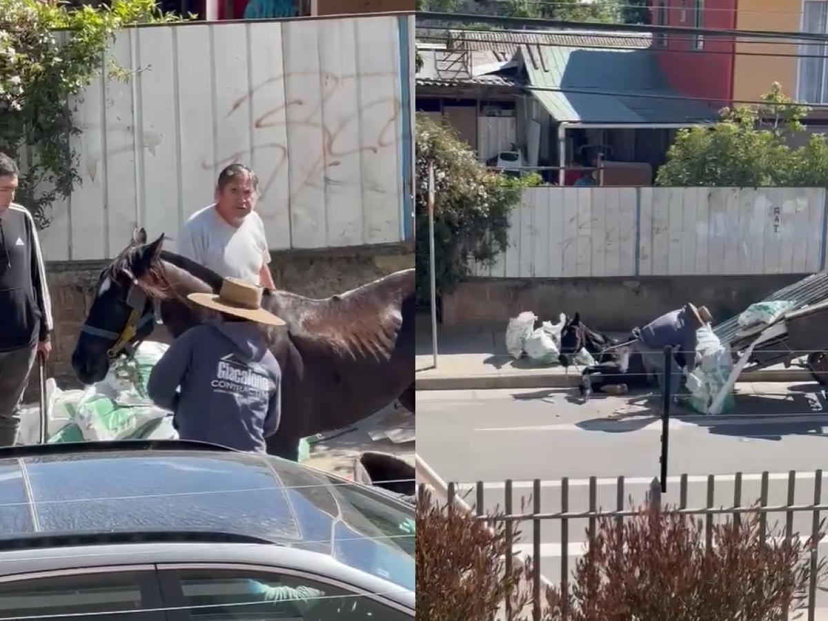 Otro caso de maltrato animal: Caballo colapsó por sobrecarga en Villa Alemana
