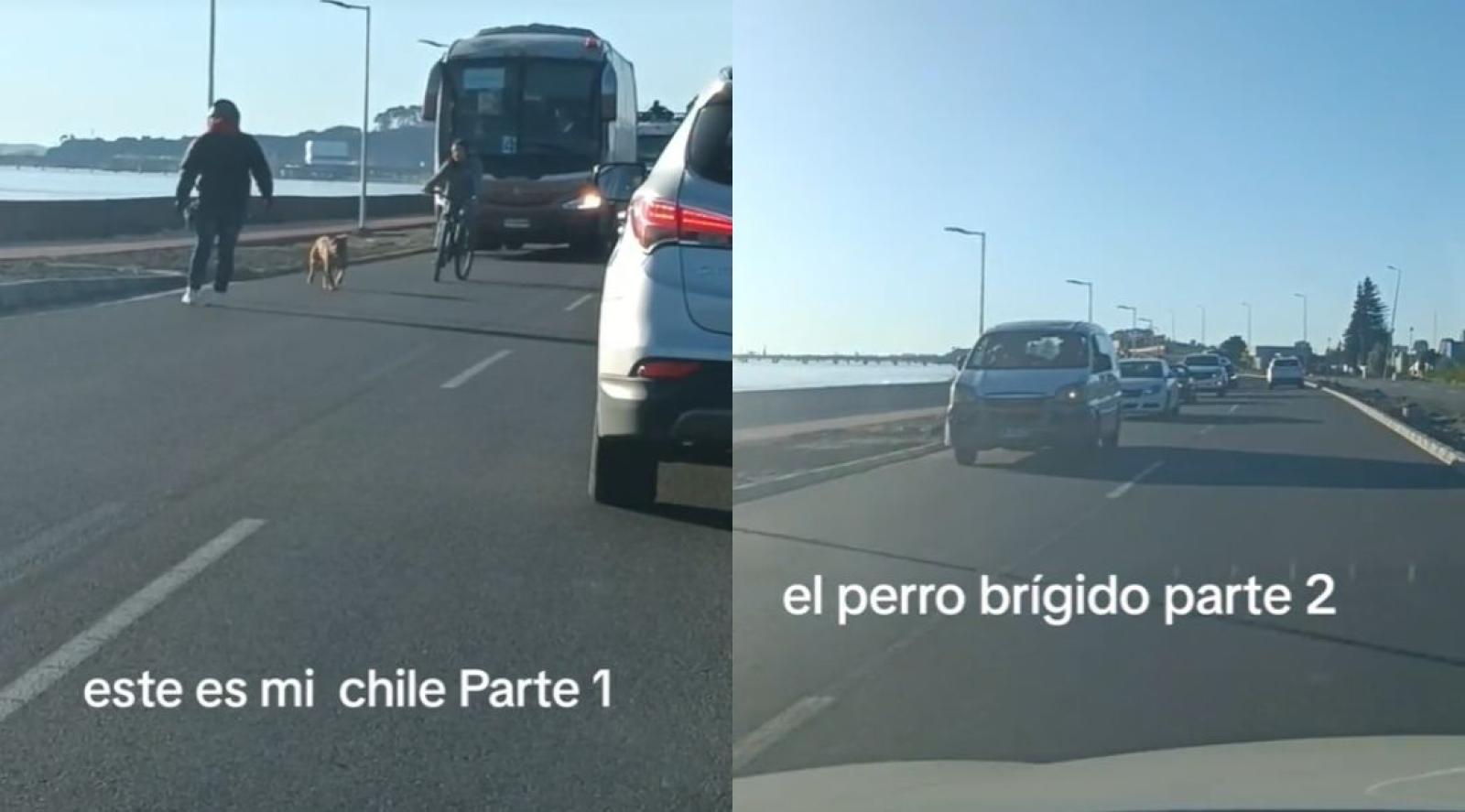 Un perro se hizo rápidamente viral en redes sociales luego de ser grabado "con las manos en la masa". Específicamente, generó un taco kilométrico en la costanera de Concepción, por querer siempre caminar en medio de la calle.