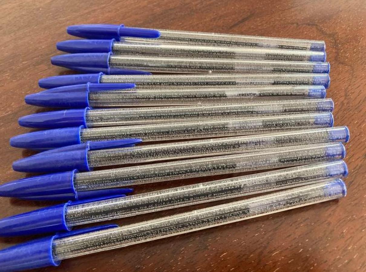 Como se puede ver en la foto, este alumno se dedicó a plasmar el derecho procesal penal de España con diminuta letra en los lápices de pasta.