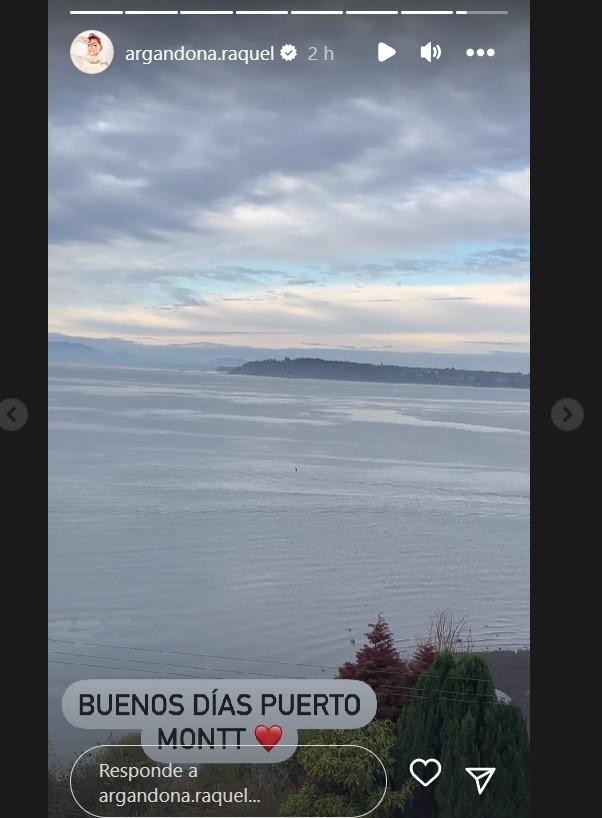 Raquel Argandoña se encuentra pasando unos estupendos días en Puerto Montt. A través de sus historias, ha mostrado cómo ha disfrutado de este mágico viaje, que ya terminará, porque el lunes se devuelve a su hogar.