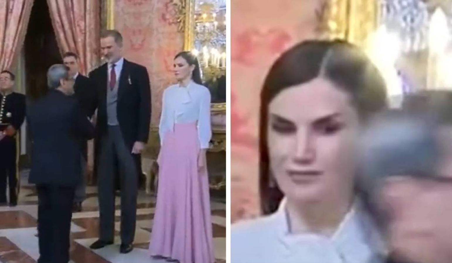 Cuando le toca saludar a Letizia, por otro lado, procede a llevarse la mano al pecho y hace una rápida y corta reverencia. Tras esto, la reina Letizia lo mira con seriedad y aparente molestia.
