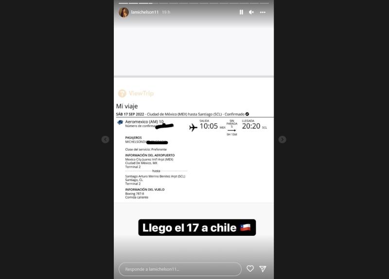 Cabe señalar que Michelson se encuentra actualmente de viaje en México por motivos de trabajo, y tal como publicó en sus historias, su regreso a Chile será el 17 de septiembre.