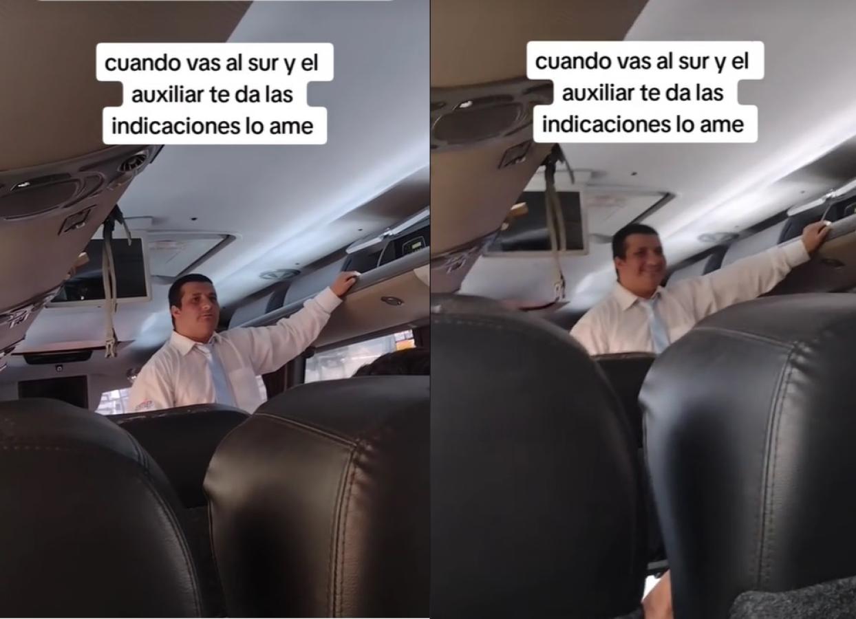 Un auxiliar de bus se llenó de halagos en redes sociales, luego de que una pasajera viralizara las indicaciones que entregaba antes de iniciar un viaje.