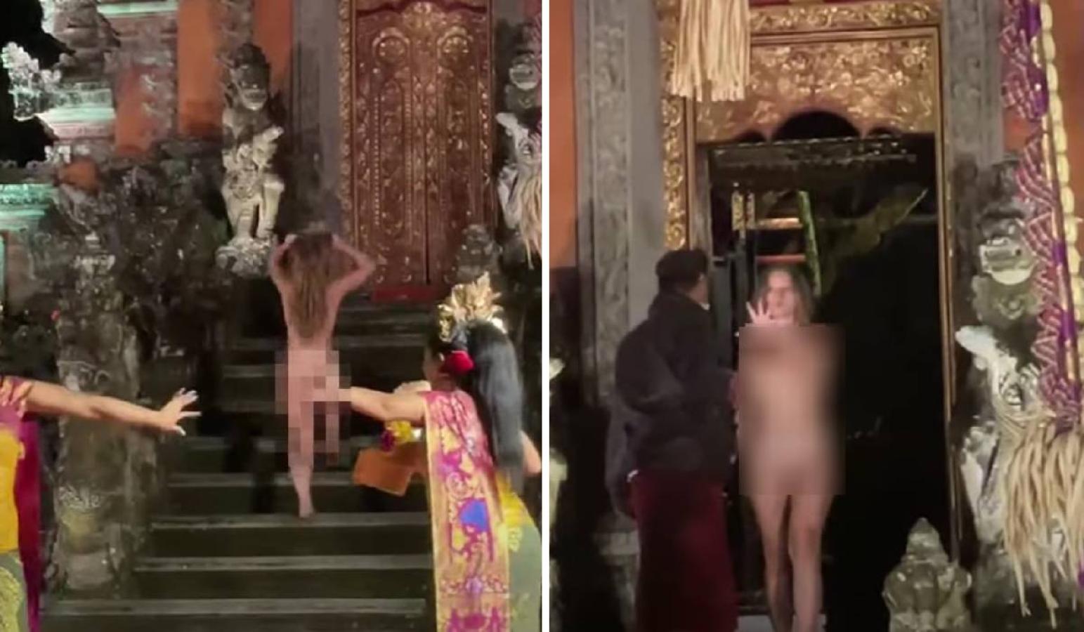 En un video se puede ver a la mujer caminando unas escaleras del Templo Saraswati Ubud con total tranquilidad y totalmente desnuda. Luego trata de forzar las puertas, tras lo cual un hombre la intenta detener.