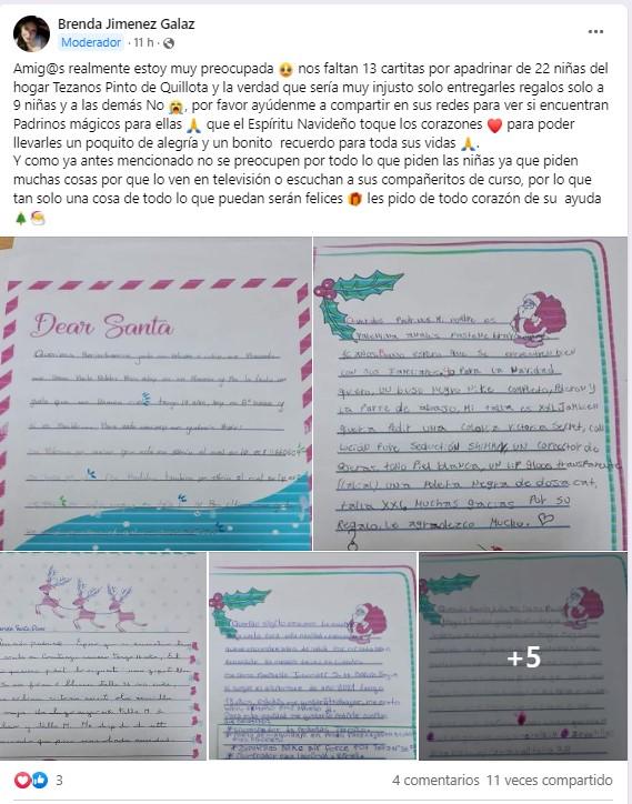 “Por favor, y si no es mucho pedir, una cena navideña y una caja de mercadería, por favor”, escribe la menor.