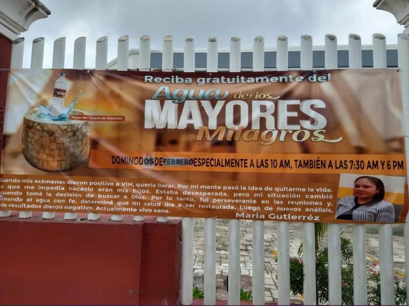 La asociación pidió la intervención de la Dirección de Asuntos Religiosos y de la Secretaría General del Ayuntamiento de Benito Juárez, por lo que ya se quitó la lona promocional sobre la cura del VIH con el “agua milagrosa”.