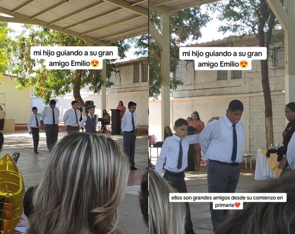 Un niño está causando mucha emoción en México, luego de que se viralizara un video en el que se ve al joven guiando a su amigo ciego en la ceremonia de graduación.