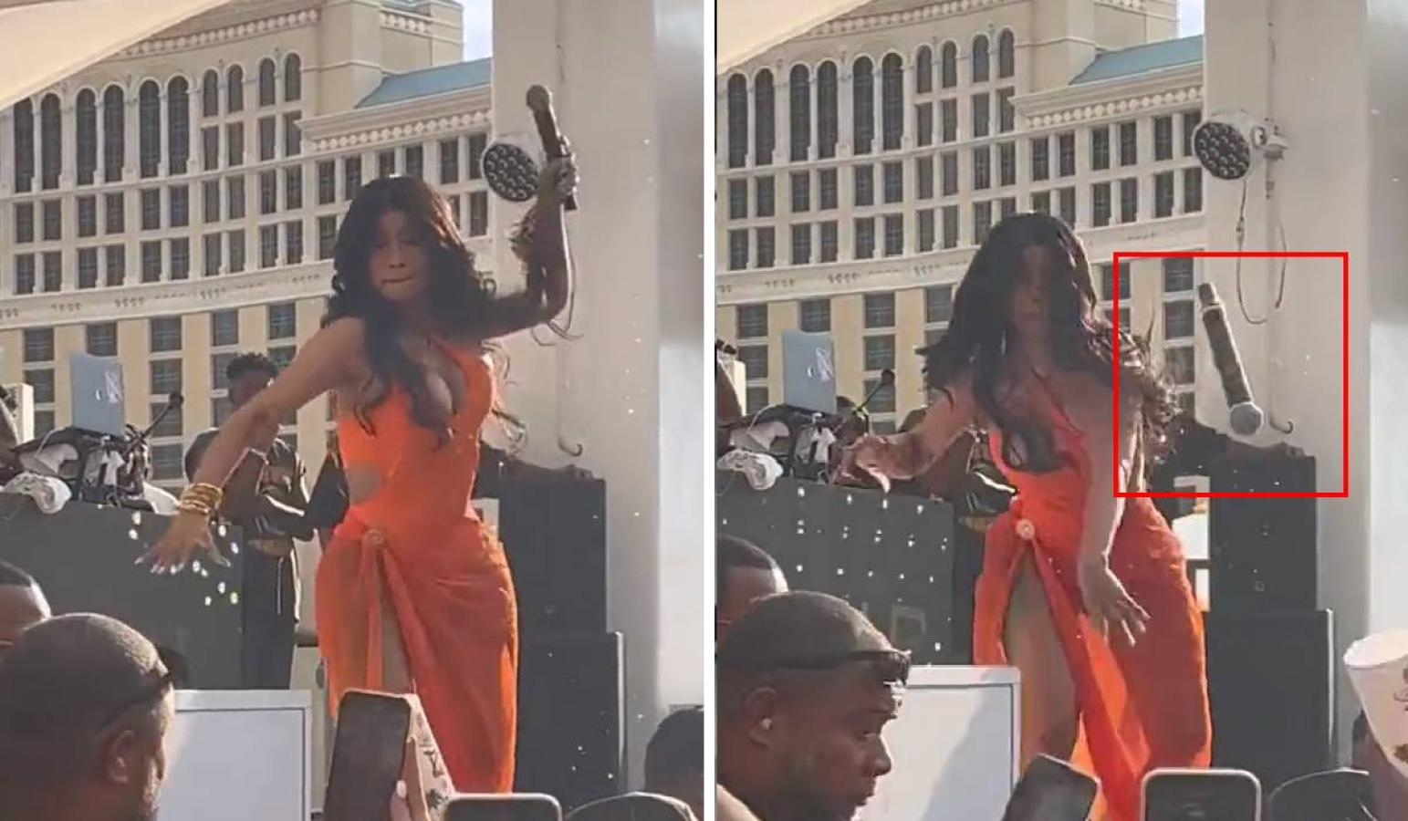 VIDEO| Cardi B enfurece en pleno show y le lanza micrófono a un fan