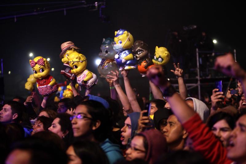Cuando fue el turno de tocar su tema “Weón, Weón, Weón”, la banda puso una imagen de fondo con el rostro de “Chino” Ríos, enviándole un mensaje por sus polémicos dichos hacia los periodistas que emitió la semana pasada.