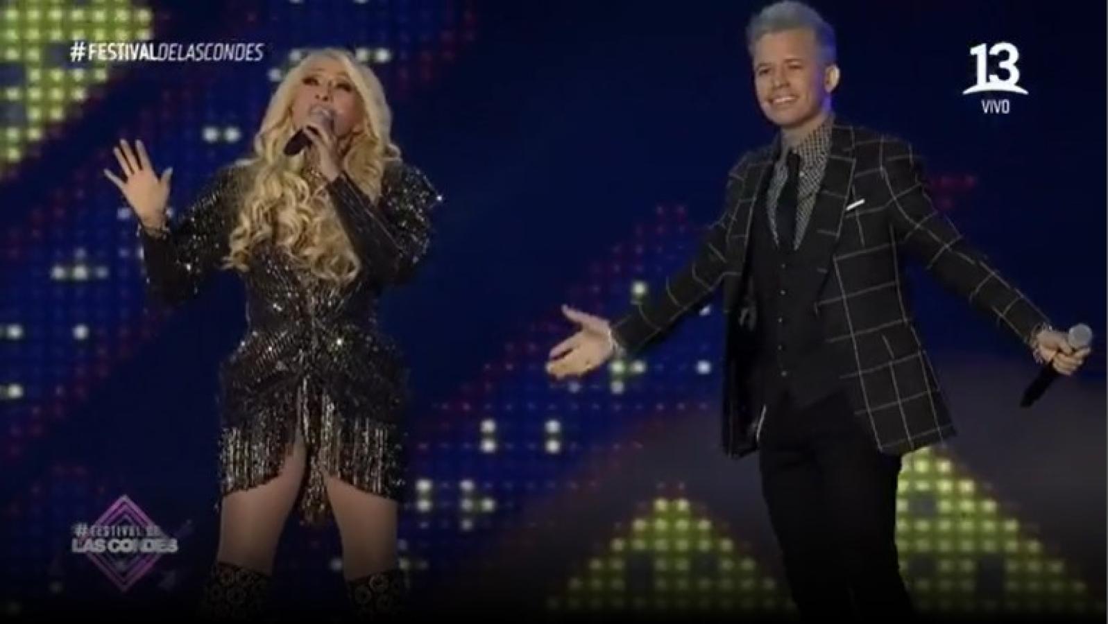 En su presentación en el escenario del Festival de Las Condes, la cantante mexicana interpretó "Ya No Vives en Mí" con el ganador de la primera temporada de The Voice Chile.