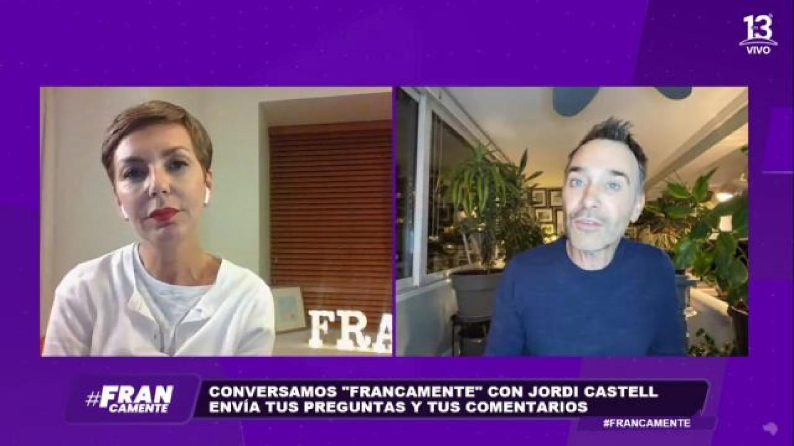 En el capítulo 19 de "Francamente" recibimos la visita de Jordi Castell, quien por estos días se encuentra enfocado en sus proyectos laborales como "El Aperitivo", espacio que conduce de lunes a viernes a las 19:00 horas por Instagram Live de Revista Velvet. Aquí ha recibido a grandes de la televisión chilena como Karen Doggenweiler, Javiera Contador, Angélica Castro, María Luisa Godoy e incluso nuestra conductora Fran García-Huidobro.