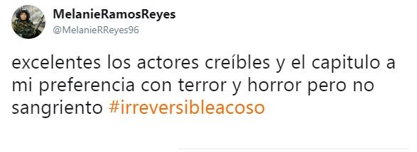 En redes sociales como Twitter el HT #IrreversibleAcoso se convirtió en uno de los más comentados a raíz de los hechos que ocurrieron en la historia, sorprendiendo a los televidentes.