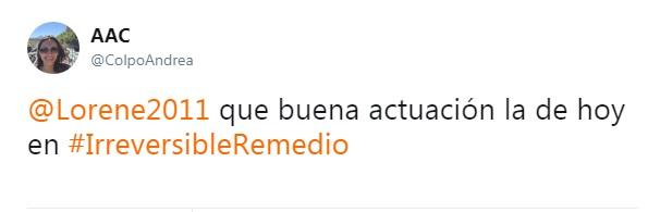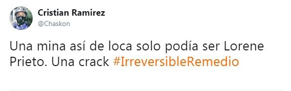 La interpretación de Lorene, recordada masivamente por su aparición en películas como “El chacotero sentimental” y teleseries como “La fiera”, fue destacada por los televidentes a través de redes sociales, utilizando el HT #IrreversibleRemedio.