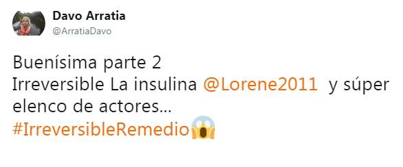 Las actuaciones y la historia impresionaron al público, el cual se abocó a las redes sociales para comentar lo que ocurrío durante las tardes del lunes y el martes a través de los HT #IrreversibleRemedio e #IrreversibleRemedio2.
