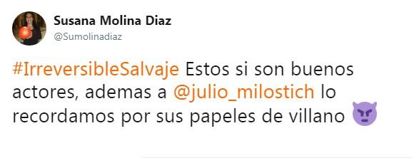 La reaparición de Julio en las pantallas del 13 fue aplaudida en redes sociales, donde se destacó el gran talento del artista, el cual no aparecía en alguna producción del canal desde su paso por “Secretos en el Jardín”, emitida en 2014.