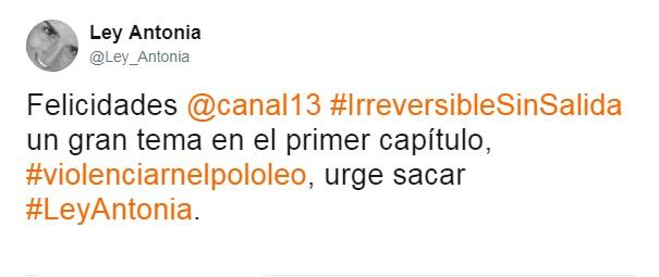 Al final del capítulo también se hizo referencia a la Ley Antonia, proyecto que busca legislar con respecto a las agresiones que se registran durante el pololeo y que está en discusión en el Congreso.