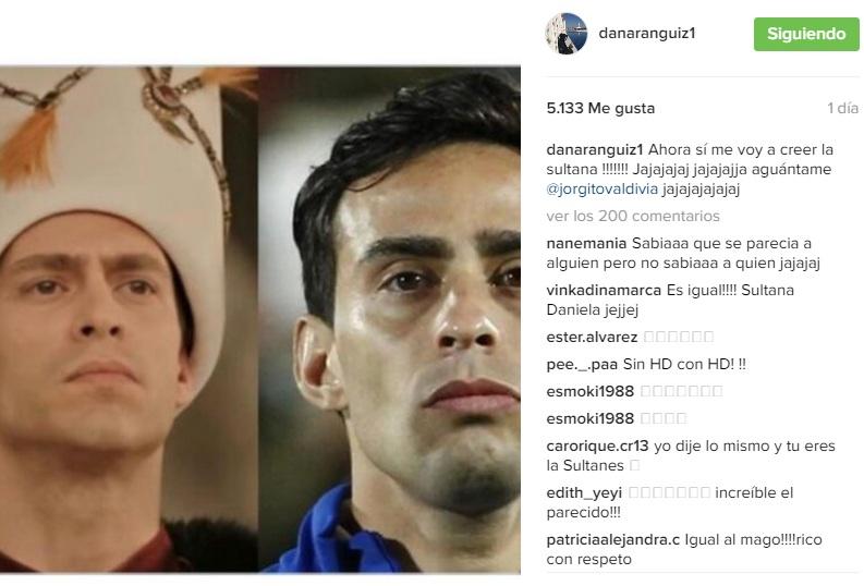 “Ahora sí me voy a creer la sultana, jajajajaj. Aguántame Jorge Valdivia”, escribió junto con una imagen donde se compara el personaje de la teleserie con su marido.