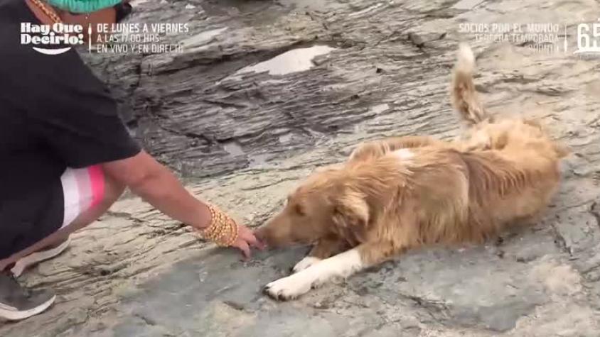El tierno encuentro de Claudio Iturra y un perrito en la orilla del Río Baker