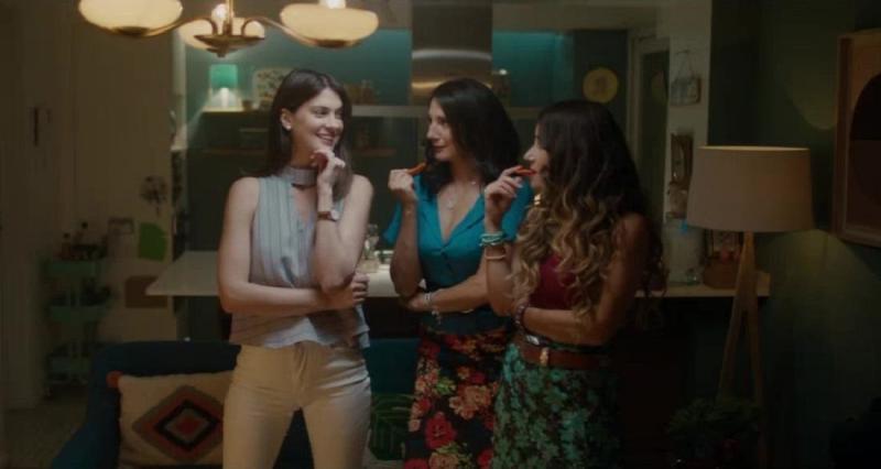 "Yo creo que lo muy distintas que son las tres es lo que las hace calzar de una manera súper justa y cuando falta una se nota, porque a las otras dos les falta algo. También están súper dispuestas a decirse todo en la cara, a ser súper frontales", habla de la relación de Mabel Andrade con sus amigas Soledad (Elisa Zulueta) y Pandora (Blanca Lewin).