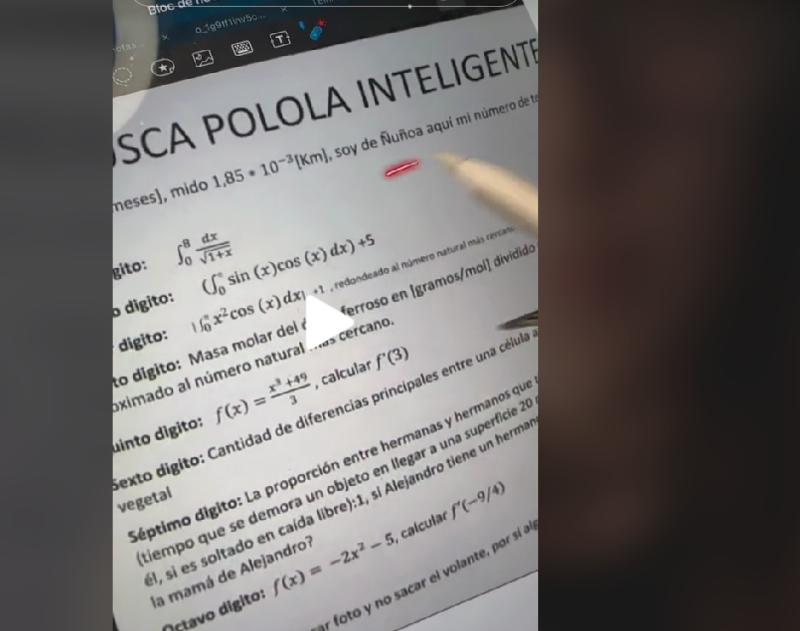 El joven, identificado como Baltasar, había dejado los dígitos de su número telefónico en varios problemas matemáticos (clic en la imagen para ver el video).