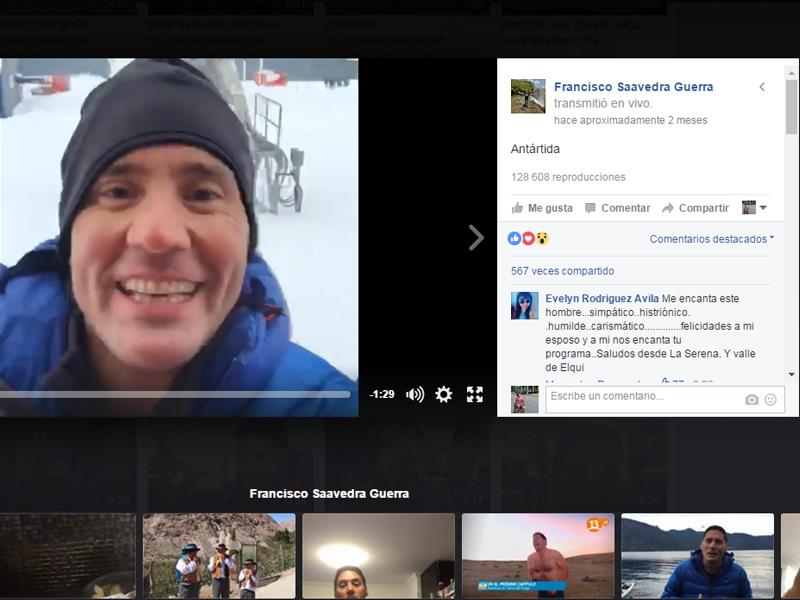 5-. Porque Pancho Saavedra se la jugó y batió un nuevo récord para nuestro país. Sólo el conductor de Lugares que Hablan lo podía lograr, se planteó hacer la primera transmisión en vivo y en directo a través de la plataforma de Facebook Live en conjunto con el área digital de Canal 13 y lo logró.