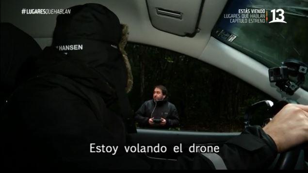 El director de Lugares que Hablan, por su parte, decidió no subirse al auto, ya que debía seguir manejando el drone para lograr capturar las imágenes aéreas del programa cultural de Canal 13.