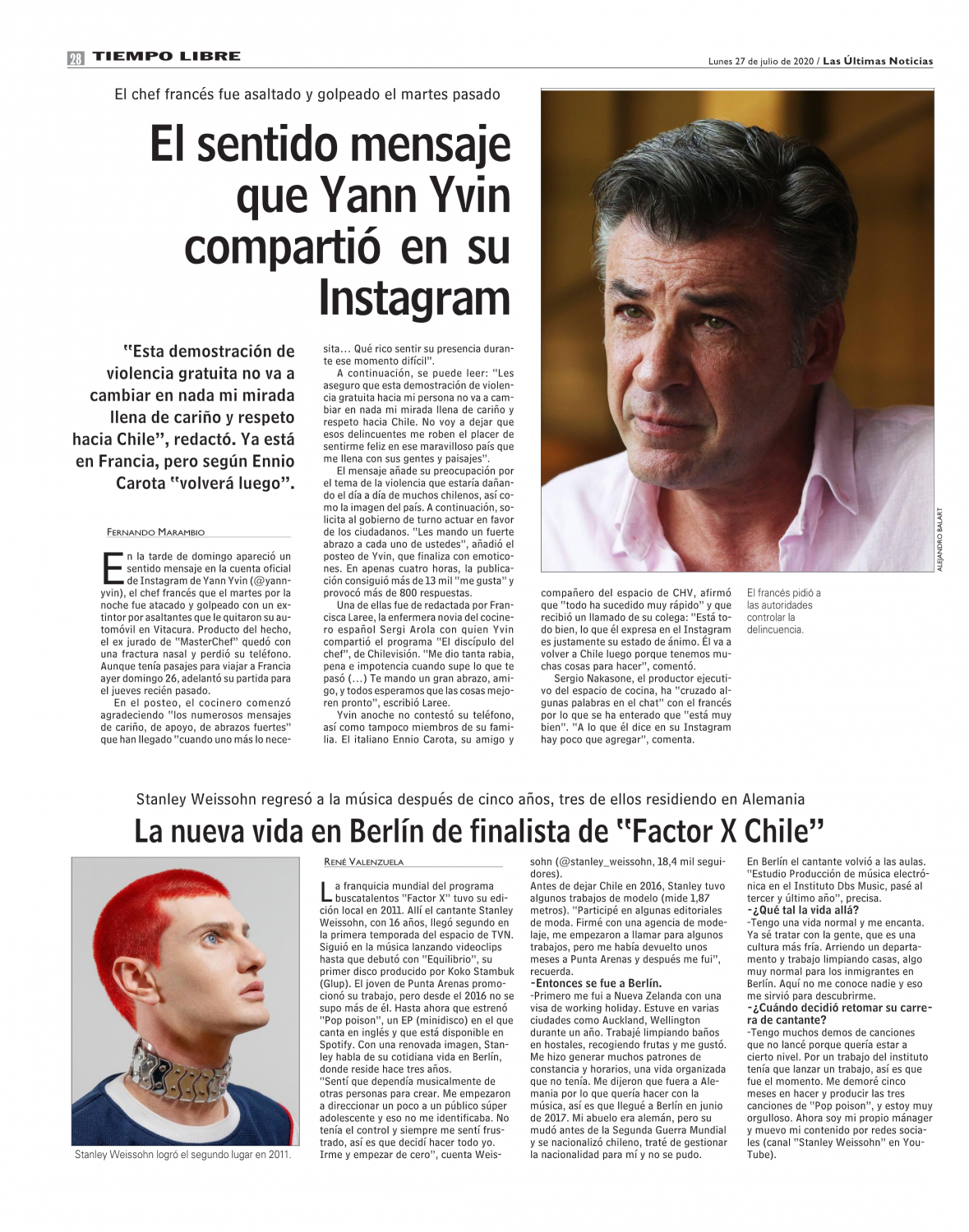 En la noticia publicada en LUN del chef de las primeras temporadas de nuestro programa mencionan que aunque tenía pasajes para viajar a Francia ayer domingo 26, adelantó su partida para el jueves recién pasado. En el posteo, el cocinero comenzó agradeciendo “los numerosos mensajes de cariño, de apoyo, de abrazos fuertes” que han llegado “cuando uno más lo necesita… Qué rico sentir su presencia durante ese momento difícil”.