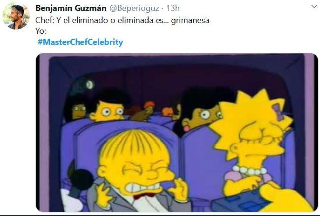 Sin embargo, Grimanesa fue quien tuvo que enfrentar la prueba «más sencilla», pues se la jugó con un postre. Finalmente, y pese a que su preparación fue la correcta, su simpleza le jugó en contra, por lo que Grimanesa Jiménez terminó eliminada.